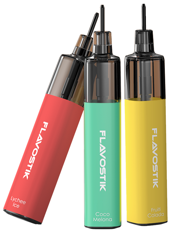 FLAVOSTIK is prefilled with premium flavored e-liquids. Our disposable vapes are available in five different flavors: Banana Ice, Lychee Ice, Wild Berry, Coco Melona and Frutti Colada.